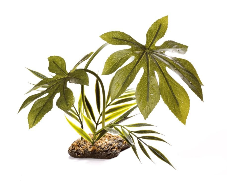 Artificial jungle canopy plant for creating a realistic reptile habitat providing an ideal hiding place for reptiles & live food. Two-tiered foliage with flexible stems to shape as required and comes complete with a weighted base to keep the plant upright. Approximate height 42cm (16.5").