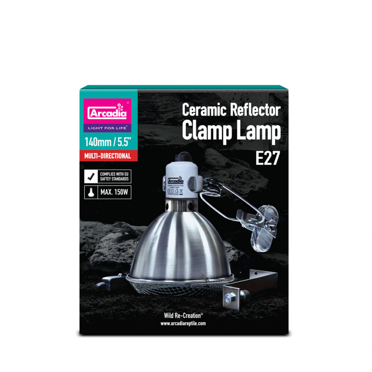 The Arcadia Reptile Clamp range fully complies with the very latest CE safety standards. The fittings now include a robust ‘gripping’ clamp plate with secondary ‘Zero fall’ nut and bolt security fixing and an upgraded ceramic lamp holder clamp. These important additions make the Arcadia Reptile Clamp Lamp fitting among the safest design to use in the world.